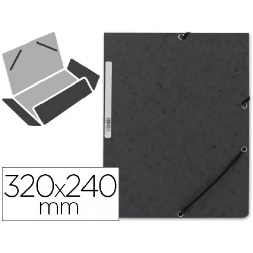 Pasta de elásticos em cartão. Fecho de elásticos. 3 abas. Etiqueta adesiva na lombada. Formato a4. Lombada de 15 mm.